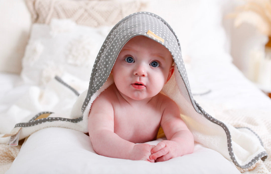 Made with super soft bamboo and cotton, with TWO layers of towelling so your baby is snug and warm. Beautifully boxed and luxurious quality.